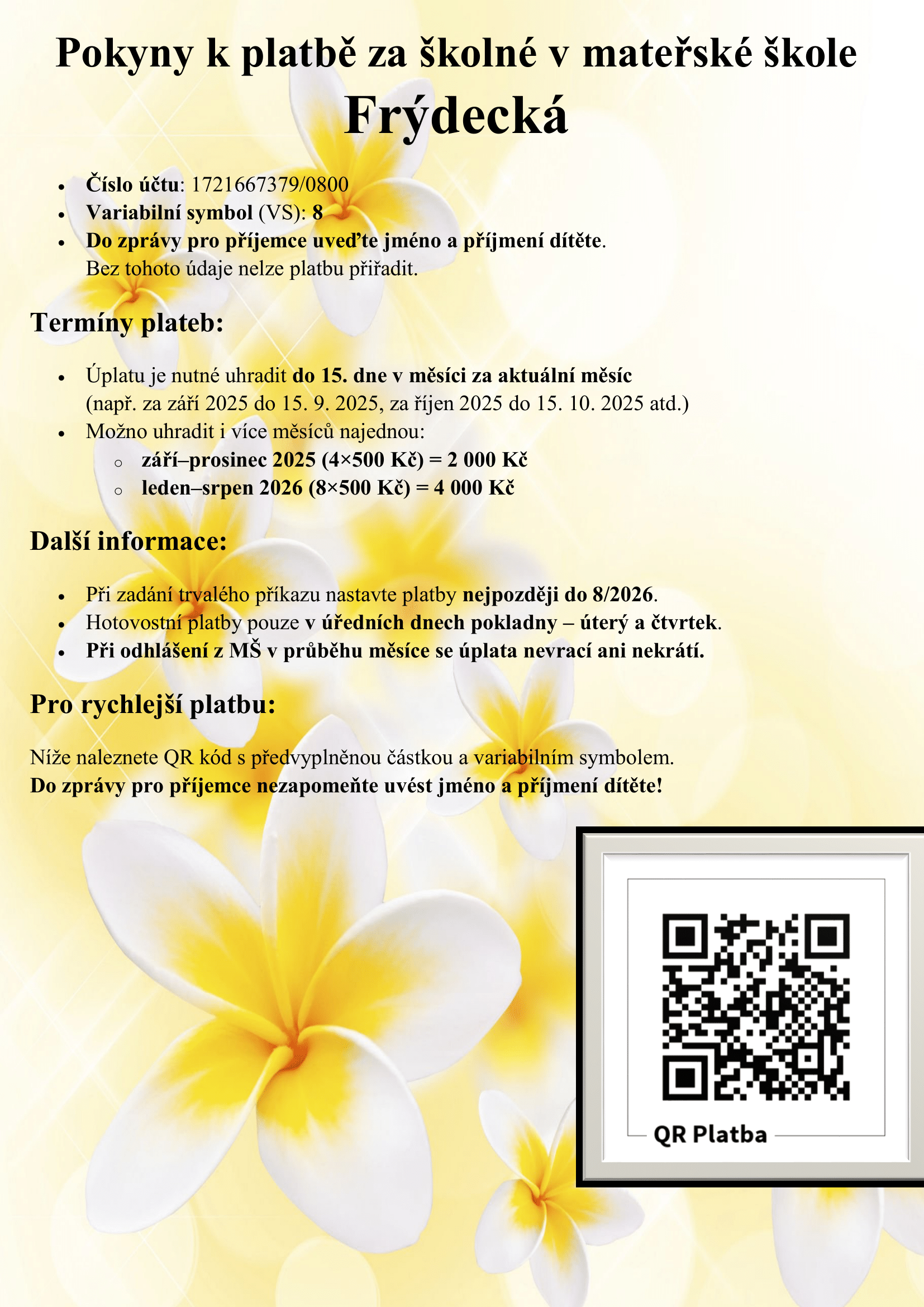 Platba mateřská škola Frýdecká
