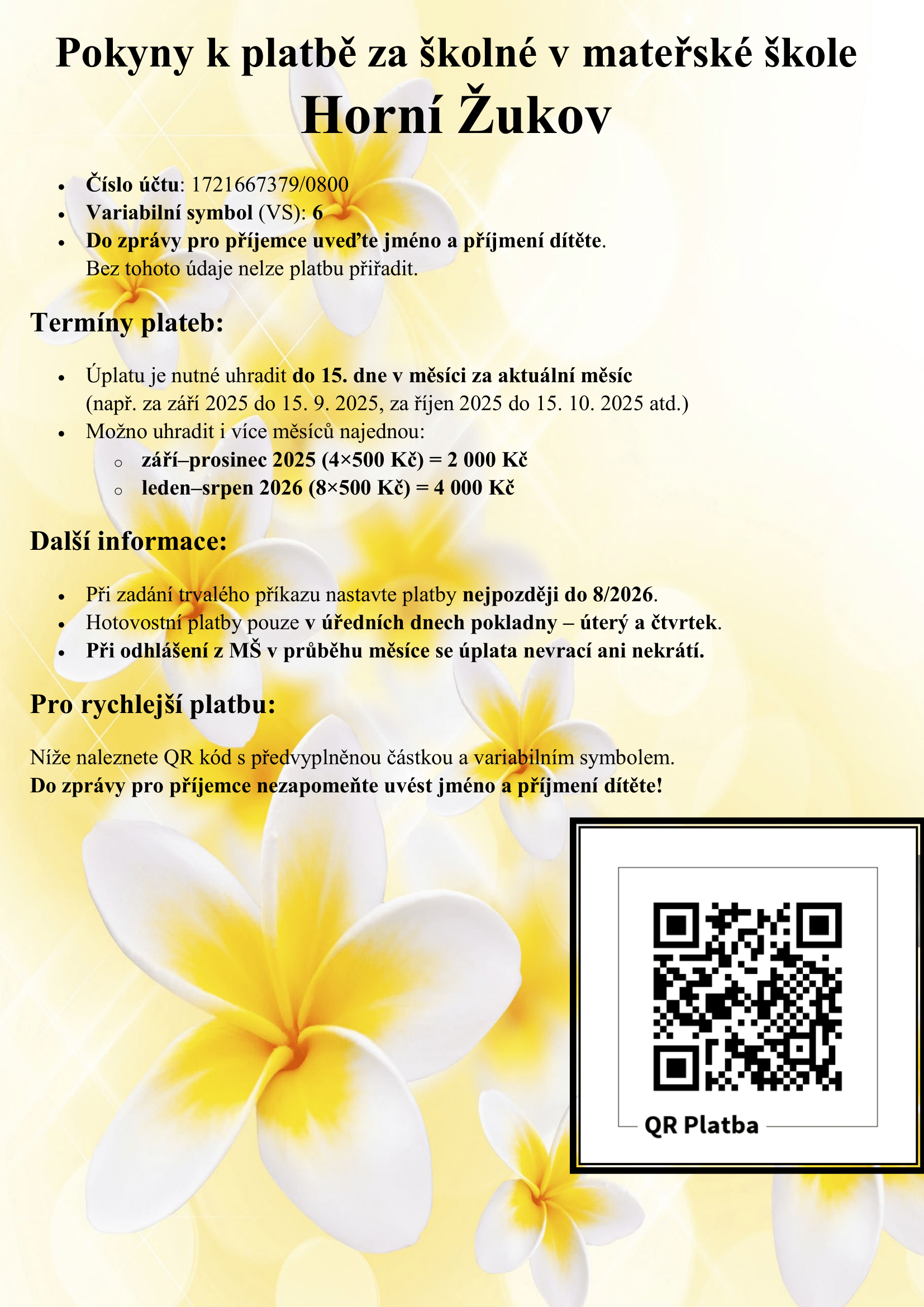 Platba mateřská škola Horní Žukov